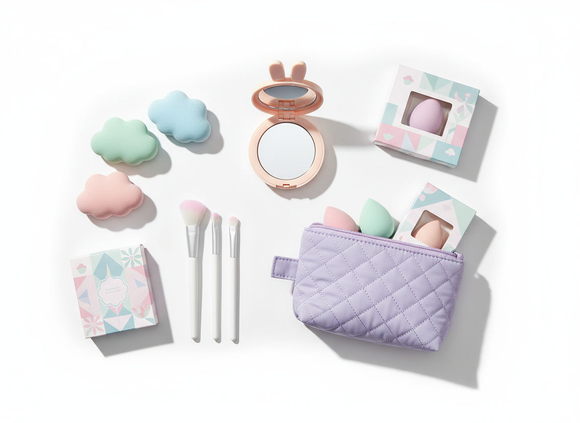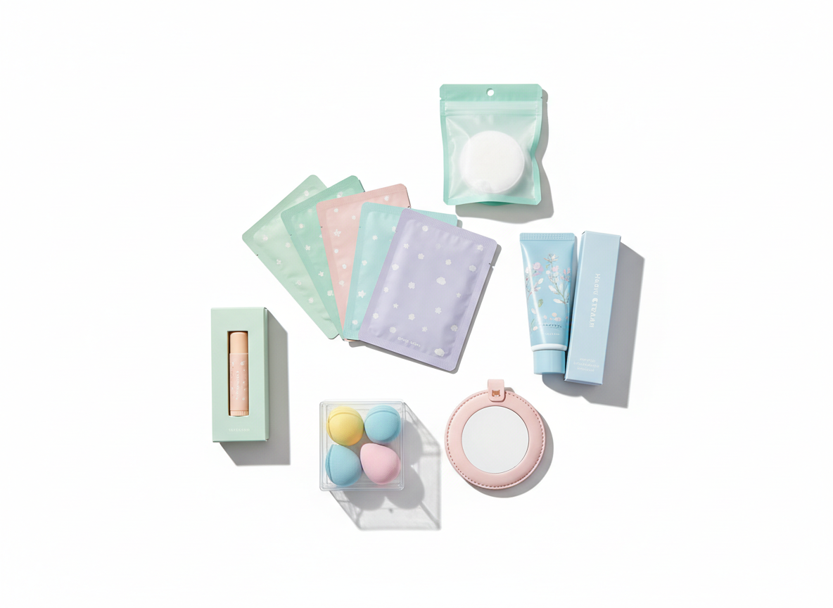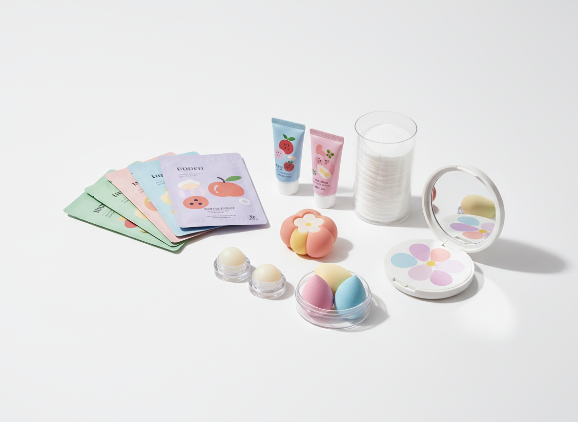 K-beauty skincare, lip tints, sheet masks, and makeup tools trending across social media.